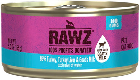 Rawz Wet Cat Food 96% Turkey, Turkey Liver and Goat's Milk Pate 5.5oz