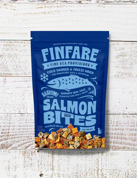 $1499Unit price /UnavailableFinfare Cold Smoked & Freeze Dried Smoked Salmon Skin Bites Cat Treats (1.3oz Bag)