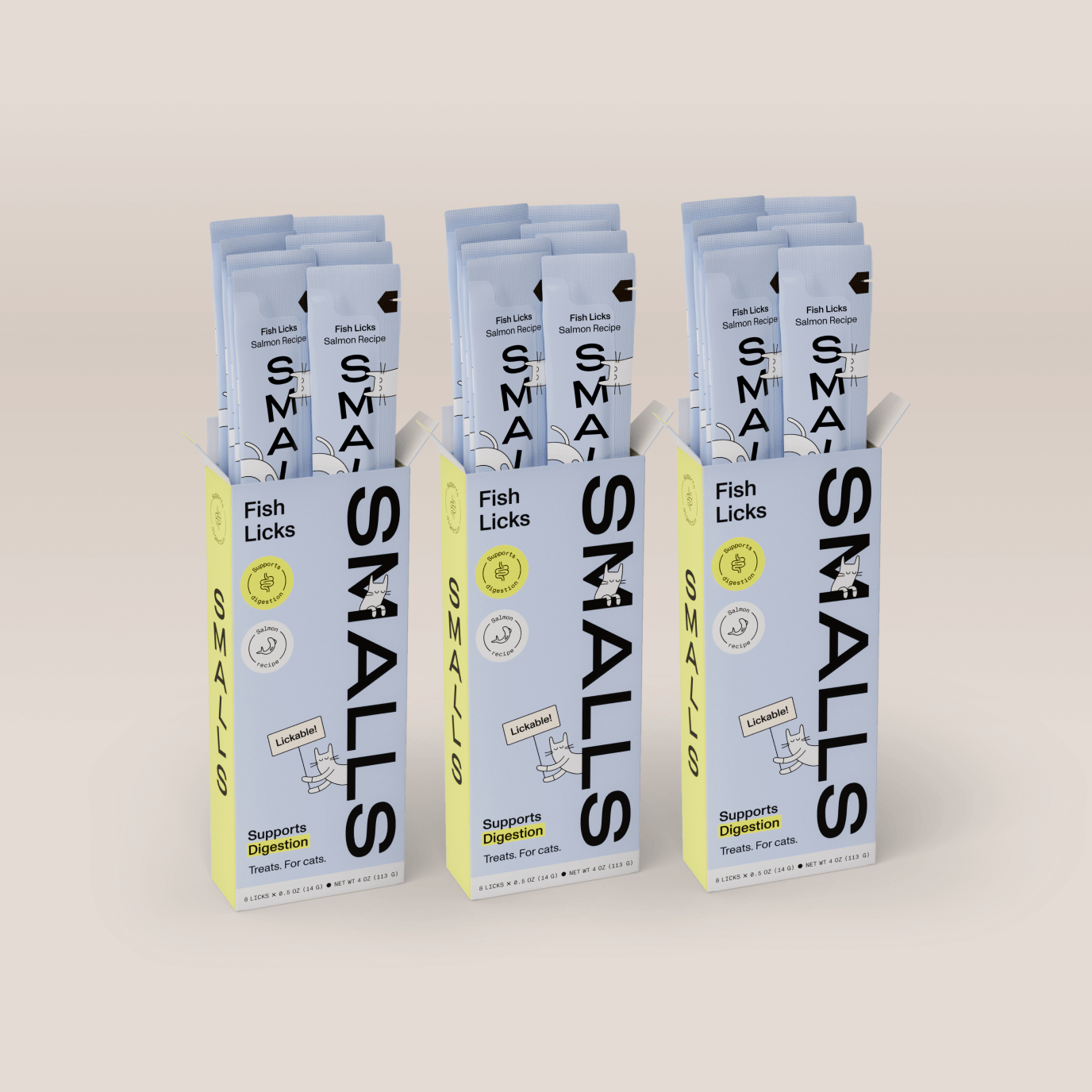Smalls Cat Treat Digestion Support Salmon Fish Licks 4oz (1 Pack of 8 Licks)
