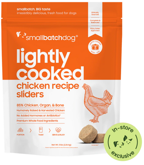 $1999Unit price /UnavailableSmallBatch Lightly Cooked Chicken Sliders Frozen Dog Food