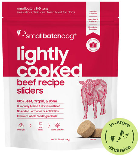 From $1299Unit price /UnavailableSmallBatch Frozen Dog Food Lightly Cooked Beef Sliders