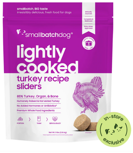 From $899Unit price /UnavailableSmallBatch Lightly Cooked Turkey Sliders Frozen Dog Food