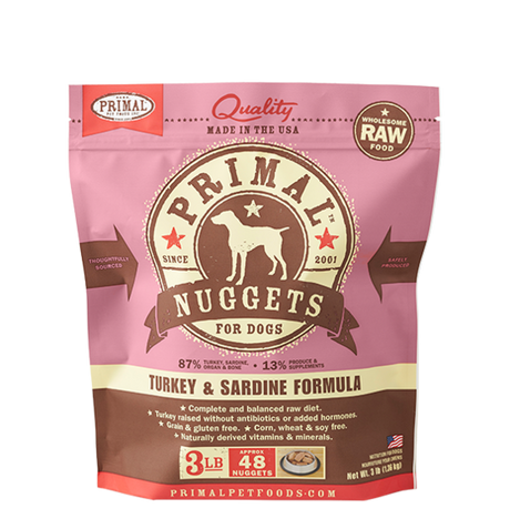 $5699Unit price /UnavailablePrimal Raw Frozen Dog Food Nuggets Turkey & Sardine Formula
