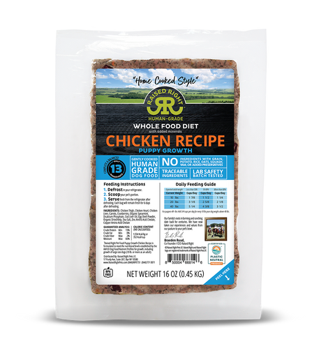 $1599Precio unitario /AgotadoRaised Right Cooked Frozen Puppy Food Chicken Growth Recipe 1lb
