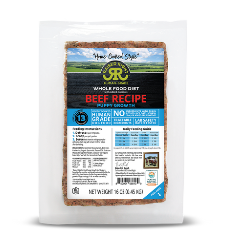 $1599Precio unitario /AgotadoRaised Right Cooked Frozen Puppy Food Beef Growth Recipe 1lb