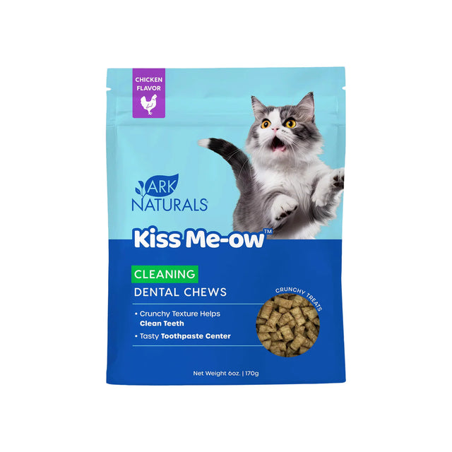 Give your cat a tasty way to care for their teeth with Ark Naturals Kiss Me-OW Dental Chews for Cats. These flavorful, tender chews are crafted to promote oral health with every bite, helping reduce plaque and tartar while freshening breath. Formulated with wholesome, natural ingredients like real chicken and salmon, these chews provide a dual purpose: a delicious treat your cat will love and a functional daily dental support.