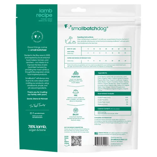 Nourriture pour chiens lyophilisée SmallBatch LambBatch Sliders