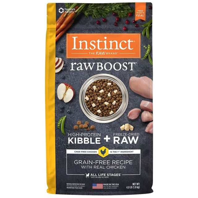 Instinct D GF Raw Boost Real Chicken Recipe is a high-quality dry dog food from the trusted brand, Instinct Pet Food. This 4lb bag is packed with real chicken flavor that your dog will love. It's not just about taste, though. This dog food is designed to provide all the nutrition your pet needs.