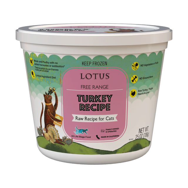 Lotus Raw Frozen Cat Food Free-Range Turkey 3.5oz is backordered and will ship as soon as it is back in stock.
