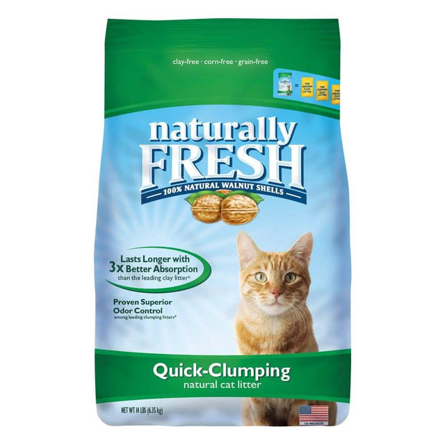 Naturally Fresh Quick-Clumping Litter is a sustainable and non-toxic cat litter made from all-natural walnut shells. This eco-friendly clumping litter is homegrown in the USA and is free from clay, corn, and grains. It offers superior ammonia odor control, neutralizing odors organically without the need for harsh perfumes. Ideal for households with one or two cats, this 26 lb bag is virtually dust-free and low tracking.