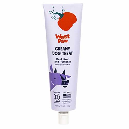 Choose West Paw Creamy Dog Treat Pouch Beef Liver & Pumpkin 5oz for a treat that's both tasty and healthy for your dog.