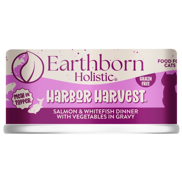 Dive into a taste of the ocean with Earthborn Holistic Harbor Harvest Grain-Free Natural Canned Cat Food, a savory wet recipe designed to delight both cats and kittens. This grain- and gluten-free entrée features flaked tuna, salmon, and whitefish in a rich, hydrating broth with wholesome veggies like carrots, peas, and potatoes — a combination cats find naturally appealing. Wild-caught fish not only brings bold flavor but also provides omega-3 fatty acids to help support a shiny coat and healthy skin. Plus, added vitamins and minerals help nourish your feline’s overall wellbeing. Whether served as a complete meal, topper, or mixer, this highly digestible wet food delivers quality nutrition inspired by holistic feeding philosophies.